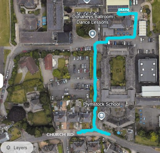See map of school grounds on the right or download here - follow the green line.